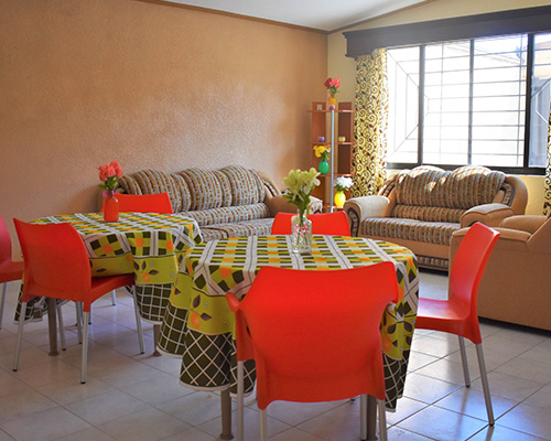 Sala y área de estar confortable, excelente iluminación natural y artificial, pasillos amplios y libres de obstáculos, acceso con rampa y libre de escalones.